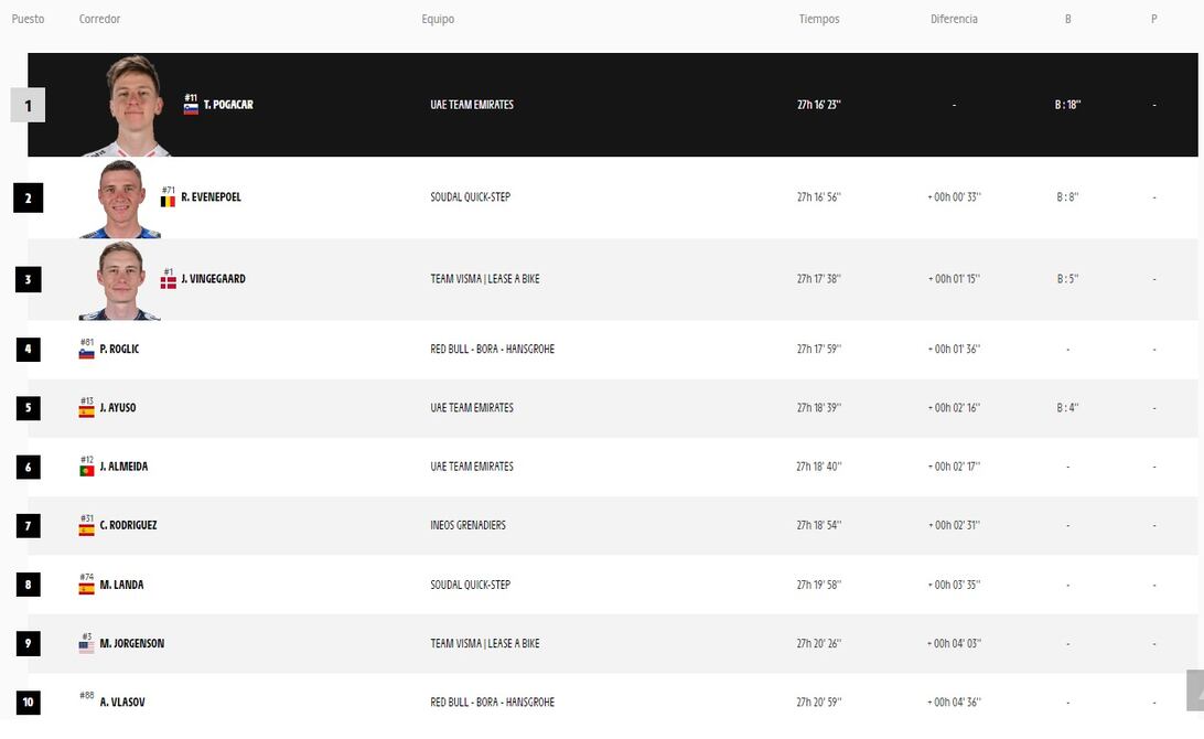 El ecuatoriano Richard Carapaz, del equipo EF Education-EasyPost, subió al puesto 26 en la clasificación general en la séptima etapa del Tour de Francia. En esta jornada, el tricolor finalizó en el puesto 33; y en la global acumula en el cronometró 27 horas, 24 minutos y 20 segundos.